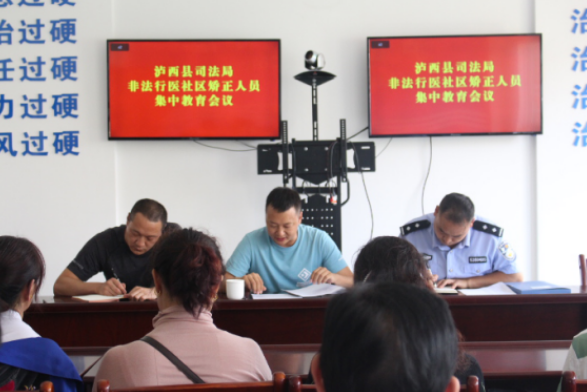 5月29日下午,泸西县司法局组织召开非法行医社区矫正集中教育会议,全县20名非法行医社区矫正人员现场接受了警示教育。泸西县卫生健康局综合执法局局长张自全、司法局社区矫正科负责人刘进强及社区矫正科工作人员张强参加乐活动,县司法局党组成员、副局长饶垚主持活动并做了讲话。