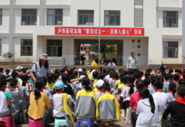 这是泸西县司法局在旧城小学开展“六一”送温暖活动的一个场景。