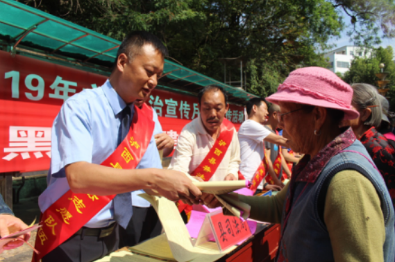 活动在广场人流密集区摆放各单位精心制作法律知识展板,法治宣传台上与群众生产生活息息相关的法律法规知识宣传资料琳琅满目,吸引了许多群众驻足观看和咨询。各参加活动单位重点围绕宪法、扫黑除恶专项斗争及社会保障、消费者权益保护、农业生产、环境保护、禁毒防艾、防震减灾、劳动维权、信访等与群众生活息息相关的法律常识向广大群众进行了宣传。现场普法志愿队伍工作人员热情接待,耐心地为群众答疑解惑。