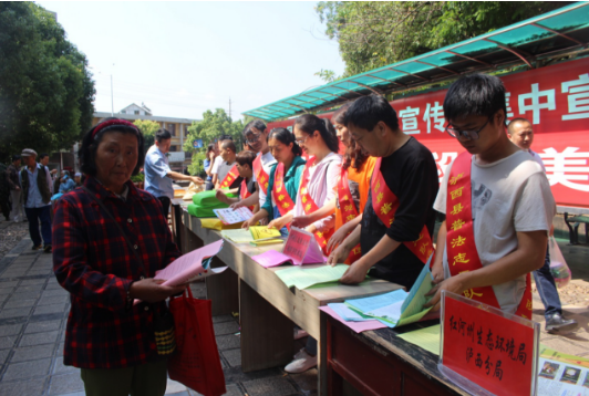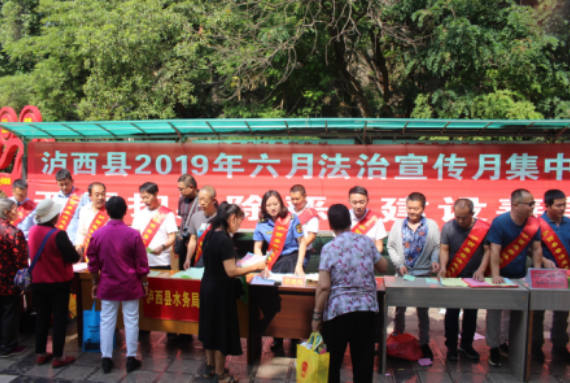 为深入开展全民法治宣传教育,大力弘扬社会主义法治精神,不断推动形成全社会尊法学法守法用法的浓厚氛围,推进“法治泸西”建设。6月3日上午,由泸西县普法办、县司法局主办的泸西县第十五个“六月法治宣传教育月”集中宣传活动在县秀山广场举行,县水利局、县农科局、县住建局、县地震局、县信访局、红河州生态环境局泸西分局、中枢司法所等12个普法责任单位36名普法志愿者参加活动。