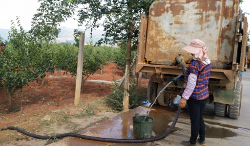 二是针对受旱具体实际,对缺乏劳动力、缺乏资金、灌水困难的建档立卡贫困户,农科局和当地村委会及时组织三轮运水车、大型拉水车对其果园进行送水,全力以赴保障果园灌溉,力争把灾害损失降到最低。