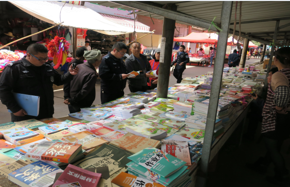 3月1日,泸西县文化市场综合执法大队接到举报,午街铺镇小集镇市场有几家书摊正在出售名为《小学教材教材全解》的教辅资料疑似伪造、假冒出版物,执法大队立即组织执法人员赶赴午街,在午街派出所的支持、协助下,及时到现场做实地调查。