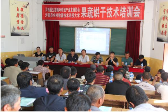 为使农函大和农技协工作齐头并进,共同发展, 7月11日,县科协与县生态循环养殖产业发展协会联合在原中枢镇初级中学阶梯教室开展果蔬烘干技术培训,县生态循环养殖产业发展协会常务理事、特种养殖小组会员及果蔬种植户共86人参加培训。