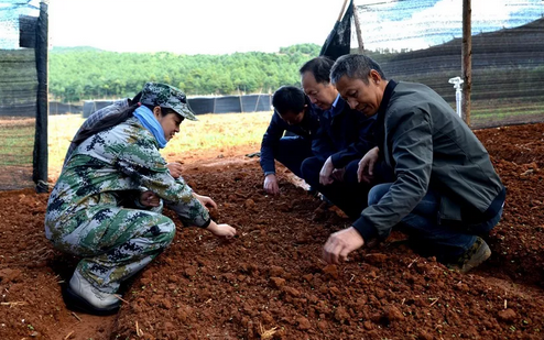 在向阳乡200亩羊肚菌种植基地,调研领导实地察看了基地的整体建设规划,听取了相关负责人关于区域布局、建设进度、运行模式等情况汇报,了解羊肚菌的栽种方式、栽种技术、市场前景、销售渠道等情况,并指出要以技术支撑为保障,种植出优质羊肚菌,形成品牌优势,带动周边群众脱贫致富。