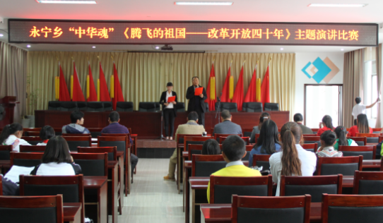 为了纪念中国改革开放四十周年,9月28日,永宁乡开展“中华魂”《腾飞的祖国——改革开放四十年》主题演讲比赛,以培育和践行社会主义核心价值观为主线,引导全乡中小学生学习了解改革开放的历史。