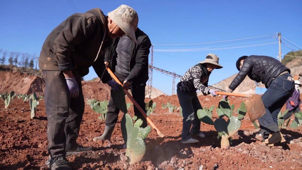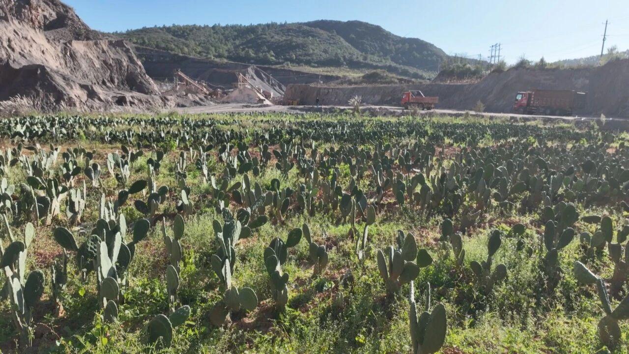 在中枢镇既比村委会下新民村的关停沙场上,一株株仙人掌扎根石缝、向阳生长。这种耐贫瘠、易管理的作物,从果实到根茎可实现“全株利用”,不仅让闲置沙场重披绿装,更让村民在家门口实现务工增收,真正达成“生态修复”与“民生改善”的双赢。