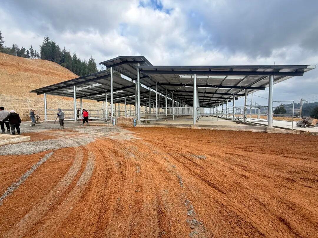 据了解,该项目占地12亩,投入中央财政衔接资金397万元,新建钢架树脂瓦屋面养牛棚1380平方米、钢架彩钢瓦屋面管理用房131.04平方米、钢架彩钢瓦屋面青储池252.96平方米,同时配套建设100m³蓄水池、100m³粪污处理池及深井等设施。