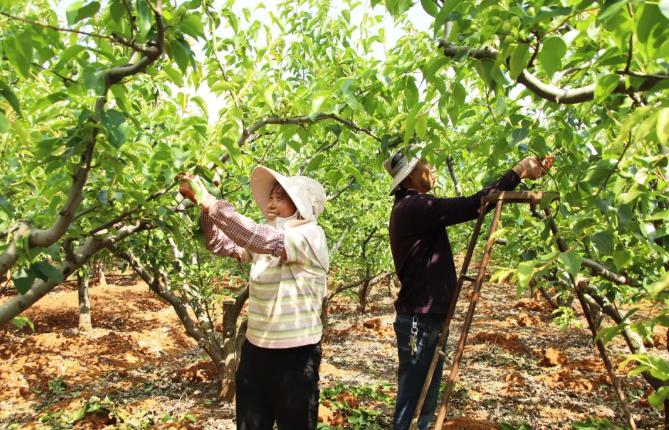“打枝疏果我们从3月底就开始了,现在家里10多亩早熟品种已经完成,剩下20多亩晚熟梨得赶在立夏前干完。”有着丰富种植经验的山林哨村果农赵保生一边麻利地操作一边介绍。立夏之后,就需要对幼果进行套袋,这道工序虽然繁琐,但却是提升果品外观、减少农药残留、实现优质优价的关键一招。