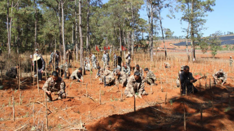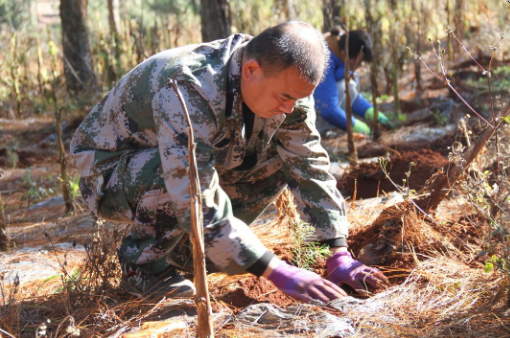 伴着和煦微风,踏着雨后润土,1月24日上午,永宁乡组织全乡干部职工和全乡护林员,到永宁村委会土沼村大陷塘开展林地恢复植树造林活动。