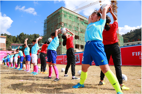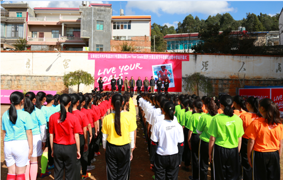 12月1日下午,云南省红河州泸西县2017年国际足联Live Your Goals(追梦)女孩足球节活动舞街铺镇初级中学站盛大开幕,该校102名喜爱足球运动的女学生们欢度属于自己的节日。