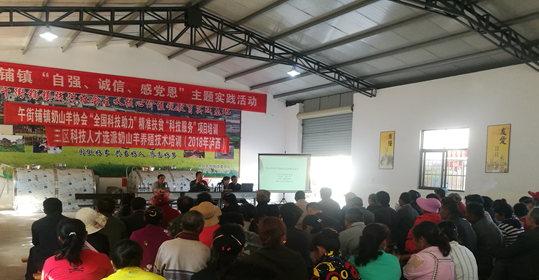 为提高协会会员及建档立卡贫困户的养殖技术水平,午街铺镇奶山羊协会在县镇科协的支持帮助下,积极融入精准扶贫工作,于4月12日至13日,在午街铺镇大栗树村举办2期“全国科技助力精准扶贫科技服务”项目培训,邀请省畜牧兽医科学院高新、胡钟仁、高华峰三位研究员和李卫娟副研究员为参训学员授课,来自河外村委会的建档立卡贫困户和协会会员共200人参加培训。