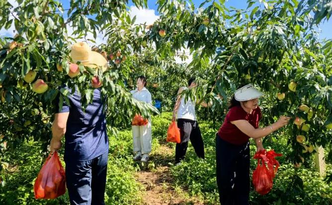 秋桃产业的发展,不仅让种植户鼓起了 “钱袋子”,还带动了周边村民就近务工。每年秋桃采摘、套袋、修枝的关键期,桃园都会提供大量季节性岗位。“光摘桃子这一个月,我都在桃园务工,一天能挣 120 元,既能照顾家又能挣钱,特别满意。” 正在分拣桃子的脱贫户陈建生笑着说。仅绿花村的秋桃产业,每年就能带动用工超过千人次,让村民实现了 “家门口揽金”。