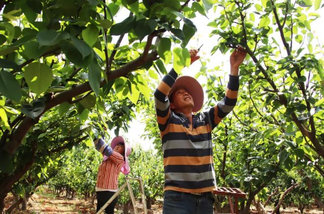 “打枝疏果我们从3月底就开始了,现在家里10多亩早熟品种已经完成,剩下20多亩晚熟梨得赶在立夏前干完。”有着丰富种植经验的山林哨村果农赵保生一边麻利地操作一边介绍。立夏之后,就需要对幼果进行套袋,这道工序虽然繁琐,但却是提升果品外观、减少农药残留、实现优质优价的关键一招。
